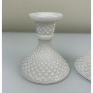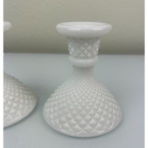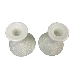 WESTMORELAND Authentic Milk Glass Set of 2 Hobnail Candle Holders White Home