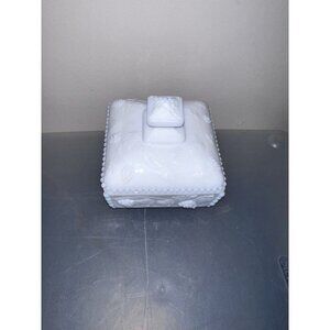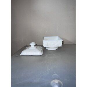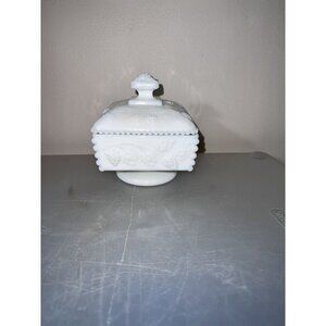 WESTMORELAND Graped Panel Milk Glass Footed Covered Candy Dish