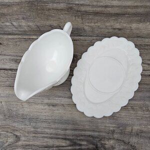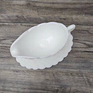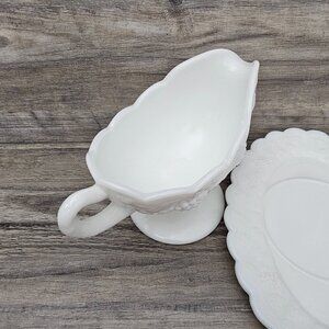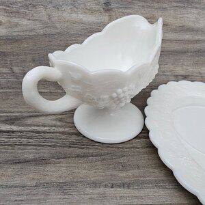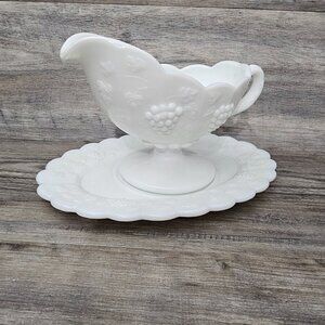 WESTMORELAND Paneled Grape Vintage Milk Glass Gravy Boat with Tray