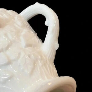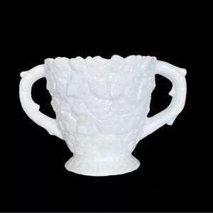 WESTMORELAND White Milk Glass Bramble Maple Leaf Double Handle Open Sugar Bowl