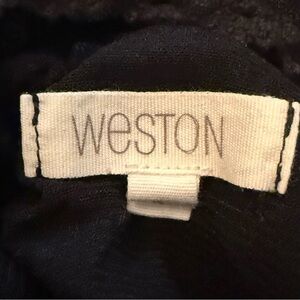 Beautiful Weston sleeveless blouse in size Small. Features a sheer lace yoke and shoulders with a colorful chevron/ikat-style print body. Double-layered for coverage. Made in the USA of imported fabrics.