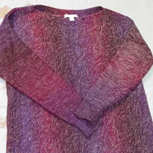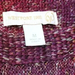 WESTPORT 1962 Pullover Sweater Burgundy Marled Lightweight Asymmetrical Split Hem Women Med
