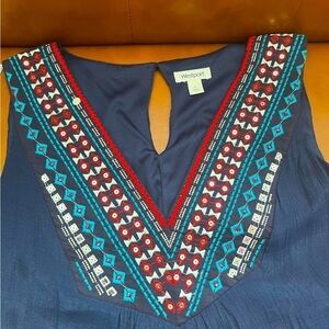 Westport Women’s Navy Blue Maxi Sift Dress with Front Beaded Pattern V-Neck Size Large . One Button Closure in the Back of Neck, Fully Lined. Embroidered with Sequins at Front and Neck. Never worn, New With Tag.