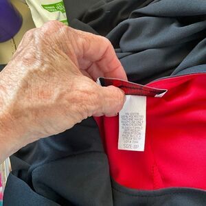 Westside Clothing Company Dress Size 8P Navy Blue and Red Vintage 1980's. A one piece dress that looks like a 2 piece dress. Red underdress with a navy blue overdress. Red covered buttons adorn the front. 3/4 sleeves. Excellent condition.