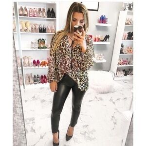 Rock out the texture and luster of curve-hugging faux leather. Leggings don't get any sleeker or sexier than this. Leather look Celebrity Inspired Wetlook Stretchy Fabric (leather look) Approximate Length: 36” Material: 95% Polyester, 5% Elastane Made In UK