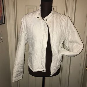 White jacket with quilted floral pattern. Cute. Light weight enough for a spring jacket. Brand New.