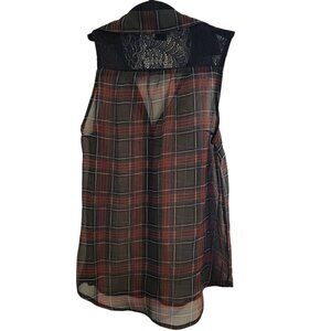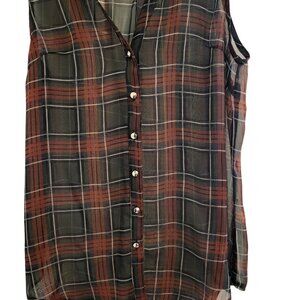 WET SEAL | Sheer Flannel Red & Green Sleeveless Blouse