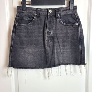 We The Free (Free People) distressed hem black denim skirt. Adjustable waist in back. Size 24