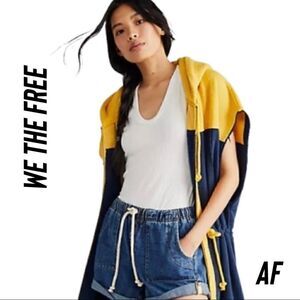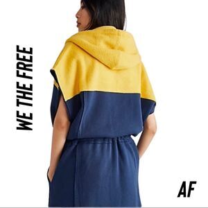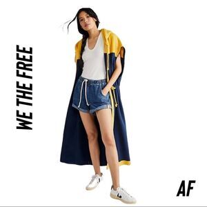 WE THE FREE LONG VEST BEACH HOODIE NEW XS NAVY YELLOW