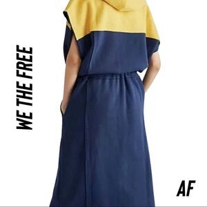 Free People We The Free Maxi Hood Zip Sweatshirt Coat Vest Navy Yellow