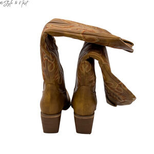 WESTERN COWGIRL ESSENTIAL, EMBROIDERED FLORAL MOTIF, KNEE-HIGH SHAFT SILHOUETTE, SIDE ZIPPER CLOSURE, CHUNKY BLOCK HEEL, POINTED TOE CLASSIC, FAUX LEATHER UPPER, BOHO FESTIVAL READY, RETRO RODEO VIBES, URBAN COWGIRL AESTHETIC, PULL-ON TAB DETAIL, CUSHIONED INSOLE COMFORT, LIKE NEW PRE-LOVED, TIMELESS WARDROBE STAPLE, FESTIVAL CONCERT MUST, EFFORTLESS STATEMENT BOOT, VINTAGE-INSPIRED EMBROIDERY, COQUETTE COUNTRY CHARM, MACHINE CLEAN GENTLE, FLATTERING CALF FIT. RETRO, VINTAGE EMBROIDERY, POINTED TOE, CHUNKY HEEL, RHINESTONE, EQUESTRIAN.