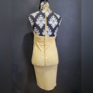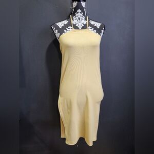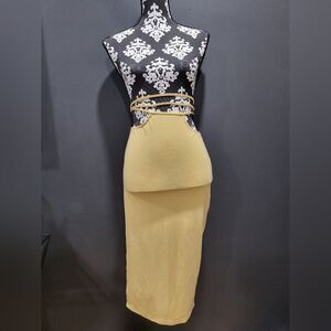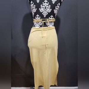 WEWOREWHAT CUTOUT Midi Skirt Yellow Halter Side Split Fitted SIZE S
