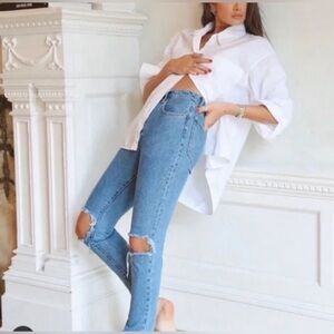 WEWOREWHAT DANIELLE VINTAGE HIGH RISE STRAIGHT STRETCH JEANS 26 DESTROYED NWT