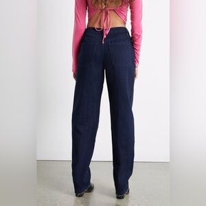 The Dark Blue Low Rise Dad Jeans from WeWoreWhat are a staple piece you're going to want to add to your rotation. These dark blue jeans sit low on the waist and feature a straight-leg fit that is roomy through the hip and thigh.