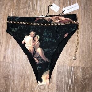 Cut high at the leg to sculpt an elongating profile, the Emily Bottom has a mid-coverage back and an optional gold chain belt that sits above the waistline. Excellent pattern placement!