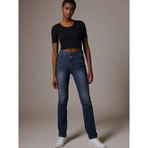 WEWOREWHAT Jeans Women 25 Blue Dark Wash Denim High Rise Straight Leg RN#124917