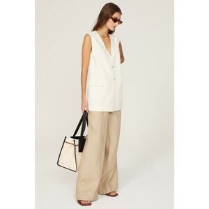 This WEWOREWHAT off-white vest is a modern wardrobe essential, crafted with a relaxed fit for effortless layering. Designed with a flattering V-neckline and front button closure, it blends structured tailoring with casual ease. The minimalist silhouette makes it versatile enough to wear on its own or over a fitted top for a polished look. Its soft off-white tone adds a refined, neutral touch suitable for any season. Made in a comfortable medium size, it offers a laid-back yet sophisticated feel. Whether styled for work or weekend, this vest delivers timeless appeal. A go-to piece for chic, everyday dressing.