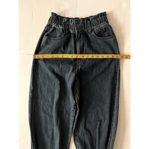 WEWOREWHAT Paperbag Jeans Women 25 Dark Blue Straight Buckle Baggy