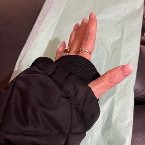 WEWOREWHAT SIZE SMALL Keep yourSELF SUPER warm and stylish with this quilted jacket. Featuring a sleek black and blue design, it's perfect for any occasion. VERY THICK MATERIAL NWT