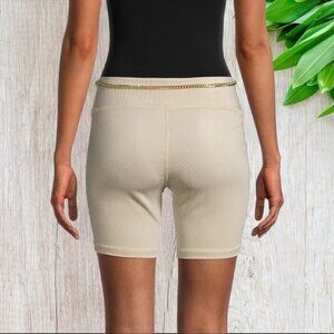 WEWOREWHAT Ribbed Chain-Belt Bike Shorts in Khaki XL