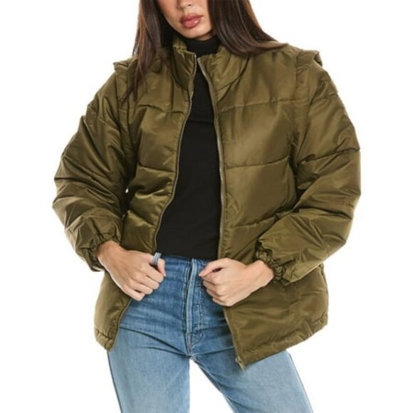 Stay warm and effortlessly stylish in this WEWOREWHAT Zip-Off Sleeve Puffer Jacket. Designed in a chic military olive tone, this versatile piece features detachable sleeves so you can wear it as a cozy puffer jacket or a sleeveless vest. The perfect blend of function and fashion — ideal for transitional weather or layering over your favorite looks.