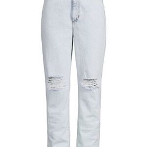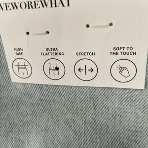 High rise, ultra flattering, stretch soft to the touch, WeWoreWhat light wash jeans, distressed knees, five pocket size 27