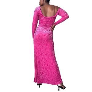 WFFS Fuschia Devore One Shoulder Slit Zebra Print Maxi Dress Size Small