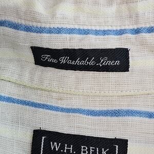 W.H. Belk Women's 100% Linen Shirt Size XL Long Sleeve Button Up Sportswear, classic style, breathable, elevate your casual and relax style with this long sleeve button up shirt, crafted from 100% linen, this shirt offers a lightweight and breathable feel, perfect for warm weather. This brand is known for its quality and attention to detail, and this shirt is no exception. The classic button-up design exudes timeless charm and versatility. Whether you're heading to a beachside brunch or a casual evening out, this shirt provides effortless style and comfort. The long sleeves make it suitable for transitional seasons or cooler summer evenings. Relaxed style, quality, attention to detail, beachside brunch, evening out, effortless style, comfort, natural texture.