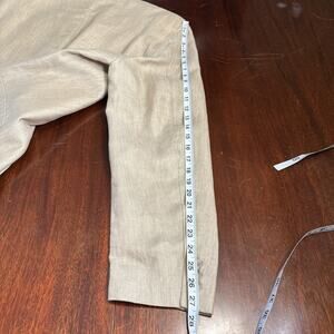Tan linen suit coat with front pocket and interior pockets