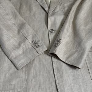 W.H. Belk Mens Linen Blazer Size 46 Long Tan Jacket Coastal Herringbone Weave