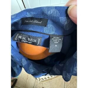 W.H. Belk Mens Shirt Sz M Blue Silk Dotted Short Sleeve Casual Shirt NEW