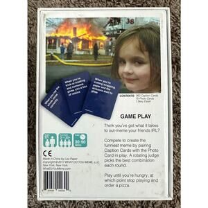 How to Play: Compete with your friends and family to create the funniest memes; Do this by using one of your dealt caption cards to caption the photo card in each round