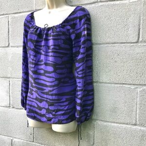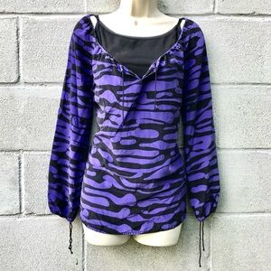 WHAT GOES AROUND COMES AROUND Silk blouse purple and black Zebra print Small