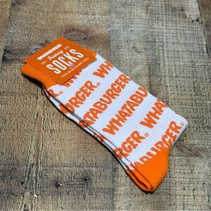 WHATABURGER SOCKS crew hamburger NEW nwt Orange And White