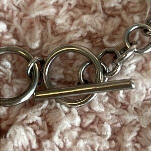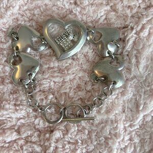 💜very pretty bracelet made of silver tone hearts with cut out hearts to connect links