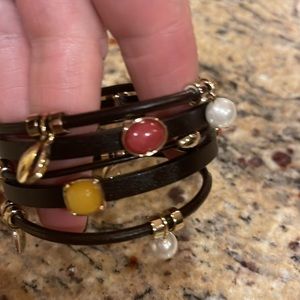 White House Black Market Bracelet. Magnetic clasp. Excellent condition. Dark brown leather with colored embellishments. Measures 7 3/4 inches opened. Worn once.