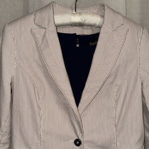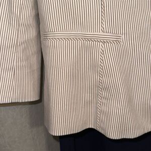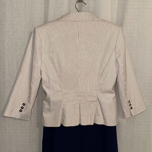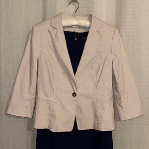 WHBM 12 Ivory Tan Seersucker Stripe One Button Collared Cotton Blazer Jacket