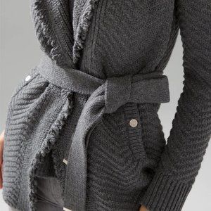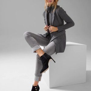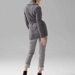 WHBM $140 NWT Fringe Shawl Sweater Coat Cardigan Jacket Grey S M