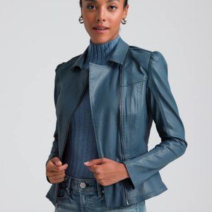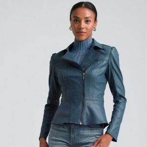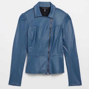 WHBM $200 Coated Denim Peplum Jacket Blue True Indigo