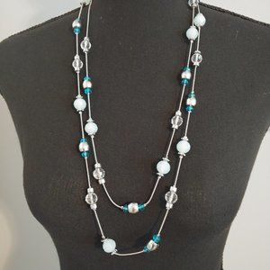WHBM 60 inch Necklace - SiIver, Blue and Clear Beads