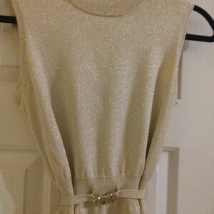 Elegant gold sparkly top, belted with gold embellishment
