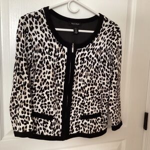 WHBM Animal Print Zip Front Rayon Sweater, Size Small
