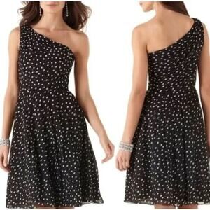 White House Black Market One Shoulder Polka Dot Dress
