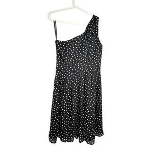 WHBM Asymmetric Dress Size 10 Black and White Polka Dot Twee Cocktail Preppy