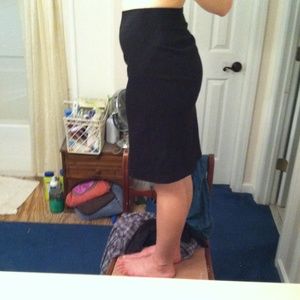 High quality black pencil skirt to rock with the day to day professional life or pair with a cute blouse and sweet pumps to take the town. (I've done both with high complements 😋😉). It has a back slit with backing (see picture 4) which is nice to hide the baby fat on the thighs and a side zipper to make it easier to hop into 😅 Length is 23"; waist circumference is 30"
