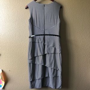 Great condition! Striped slimming banded layers, back zip, belt loops, skinny patent-black belt, machine wash, line dry. #PoshFind! Was labeled "bodycon dress".