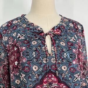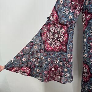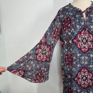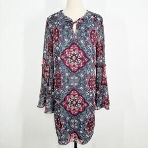 WHBM Bell Sleeve Medallion Shift Dress Blue Long Sleeve Boho Work Church Size XL