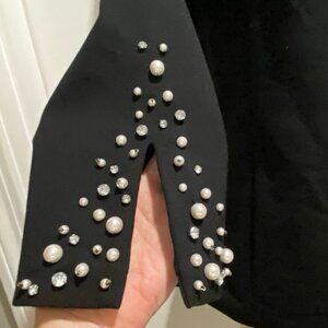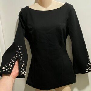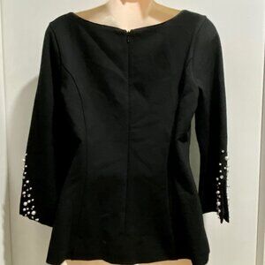 WHBM Black Beaded Pearl X Silhouette Tailored Structured Minimalist Knit Top 8