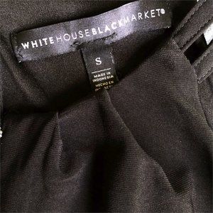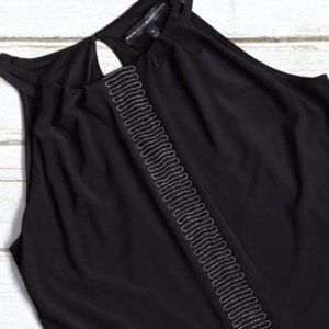 White House Black Market black beaded sleeveless tank style top. Size S. This beautiful top is sleeveless with double strap detail. Beading down the front. It has a keyhole at the back. Fully Lined. Soft and comfortable. 95% polyester, 5% spandex. Pre-owned good condition. From smoke/pet-free home. Please feel free to ask if you have any questions.