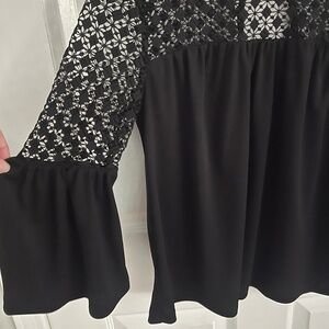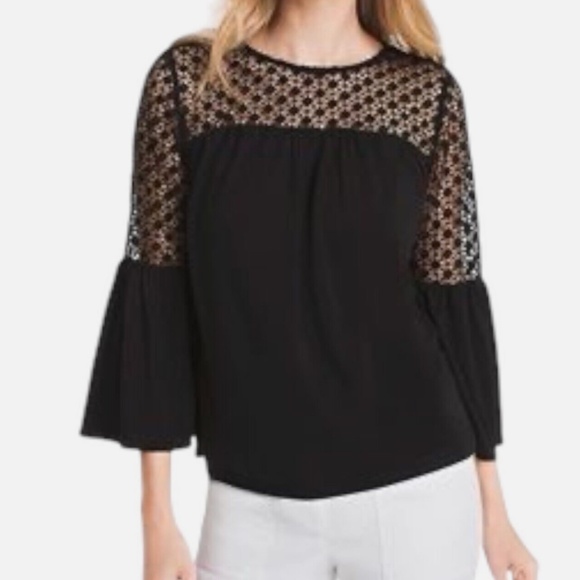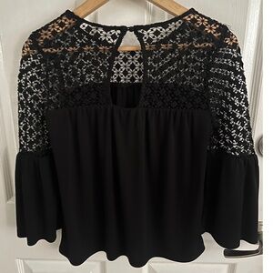 WHBM Black Crochet Lace Top with Bell Sleeved - XXS